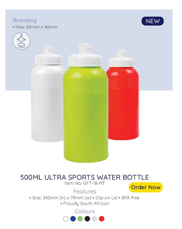 A sturdy plastic water bottle carrier that includes 10 x750ml Bottles. Different bottle colours available.